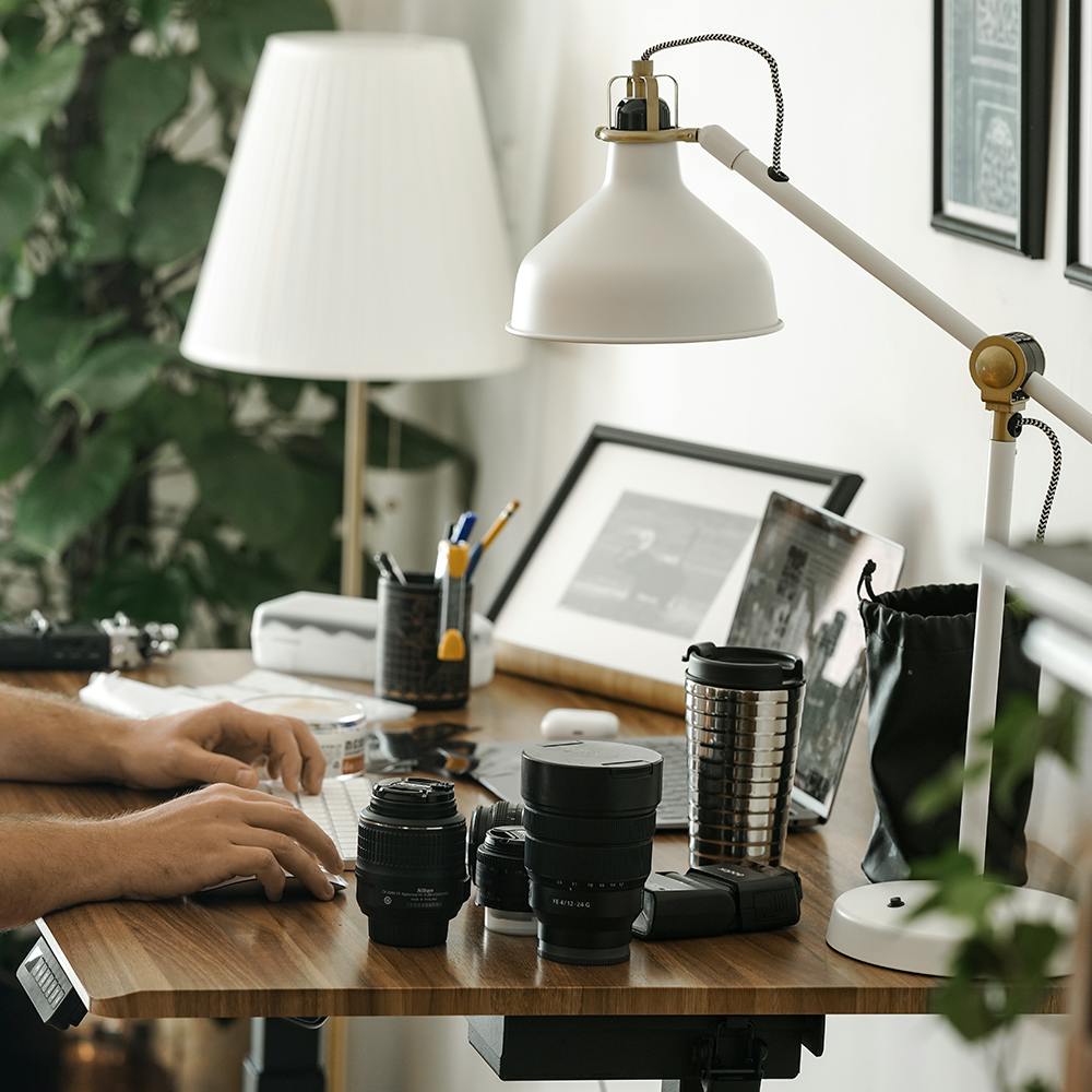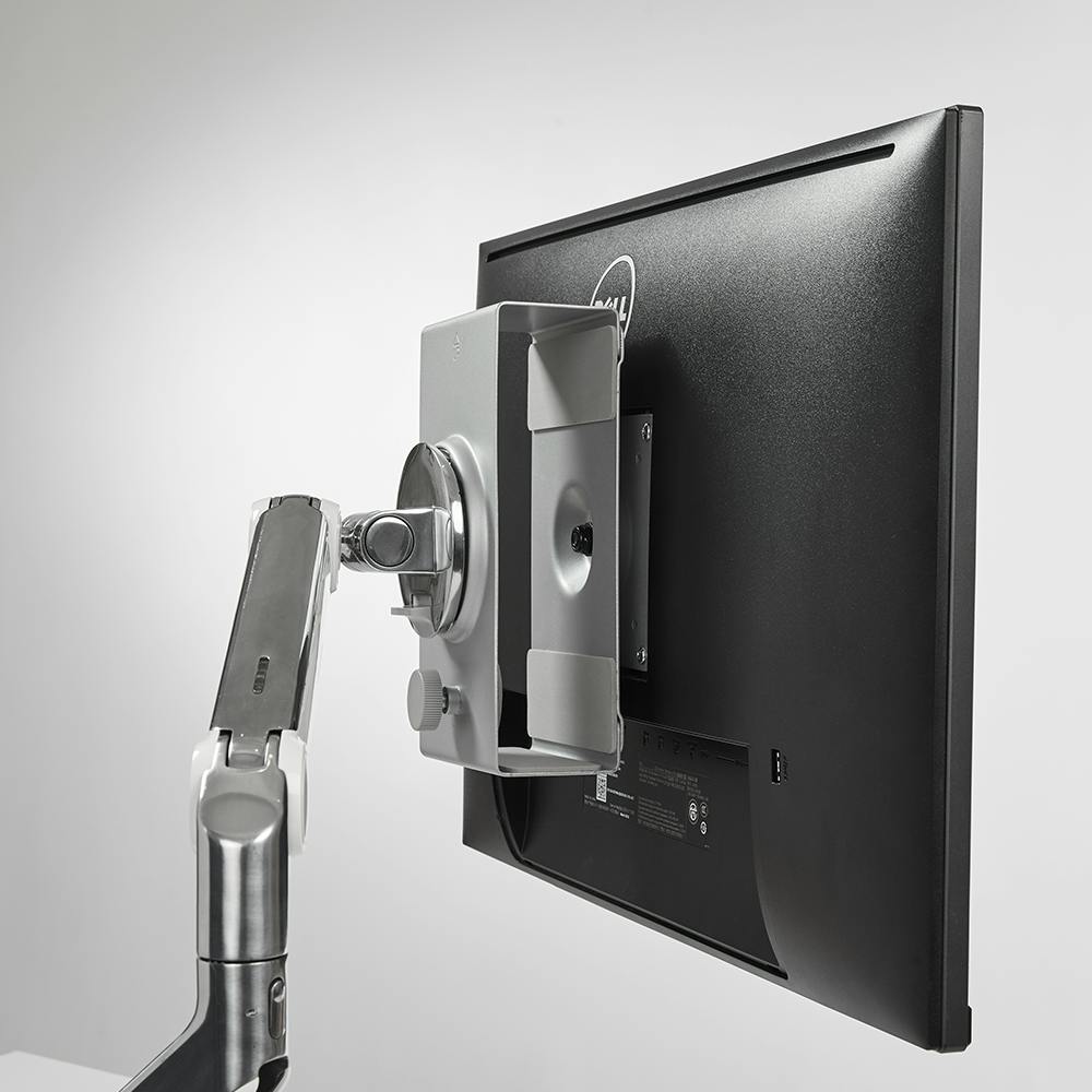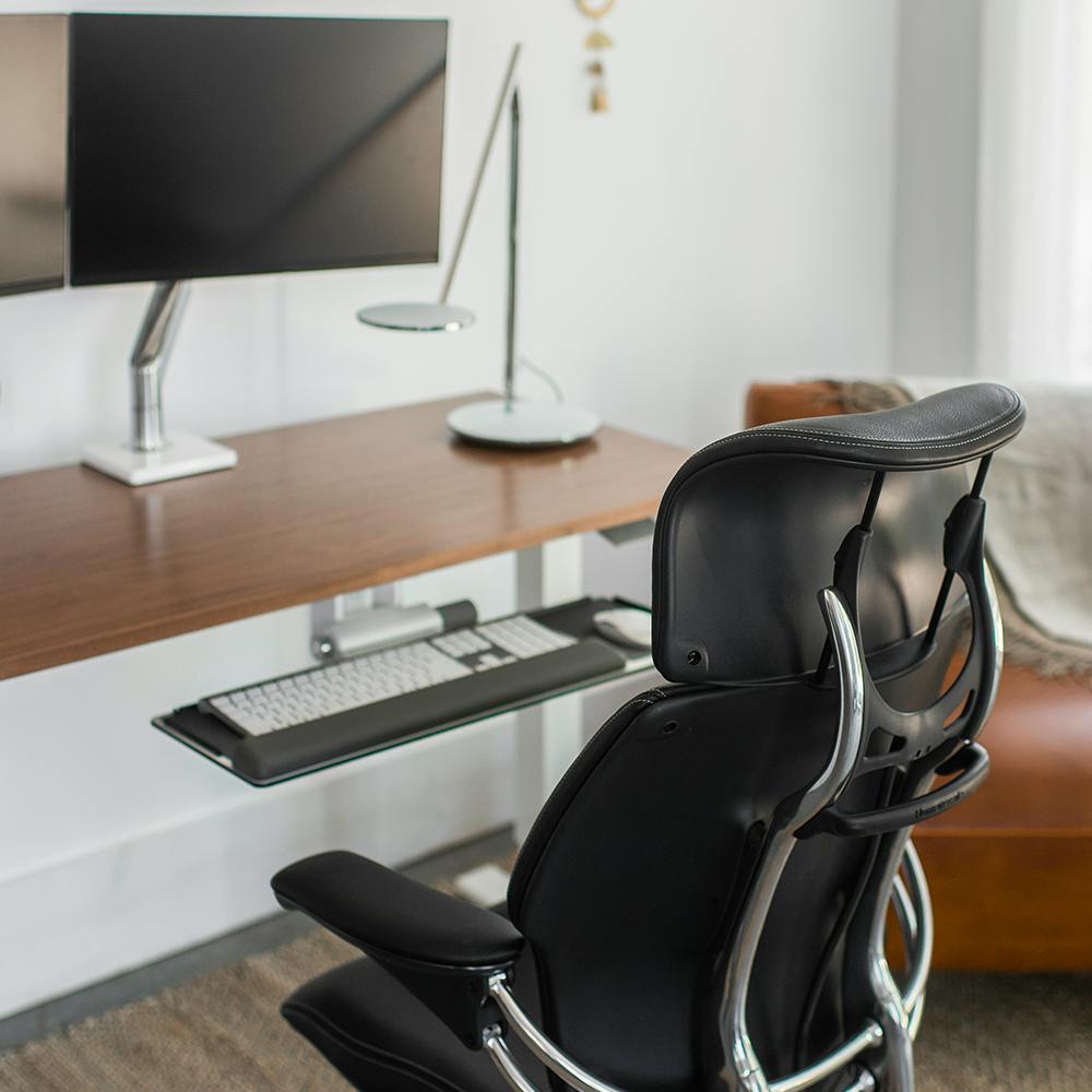 Monitors, Take a stand. A monitor arm frees up valuable desk real estate and also keeps you in the proper ergonomic posture.